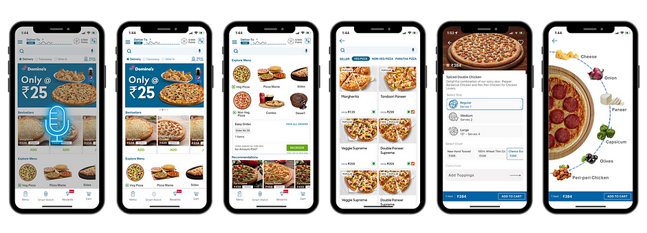 Clustered Menu: The Menu page of Domino's app was crowded with too much information, and Mr Suresh had to scroll a lot to search for the right pizza.